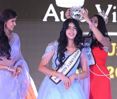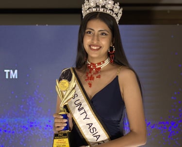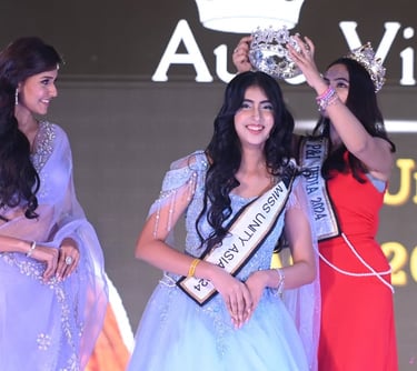 Aura Virmani is a dynamic 18-year-old representing Asia at Miss Unity 2024 and placing as 2nd Runner Up. Holding the title of P&I Miss Unity Asia, she has demonstrated her versatility as a pageant queen and a state-level shooter in 10m Air Pistol Shooting. A passionate advocate for resilience and confidence, Aura has overcome personal challenges, including bullying, to emerge as a strong, inspiring figure. Currently pursuing a BBA in Mass Communication, she combines her academic pursuits with her love for pageantry and sports. Aura’s journey exemplifies determination, making her a role model for young women aspiring to excel in diverse fields.