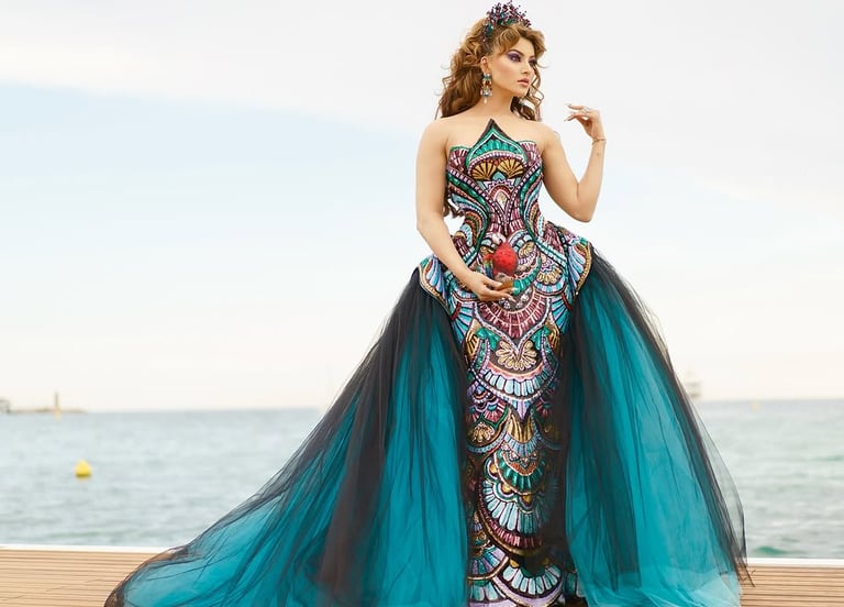 During Cannes 2025, Urvashi Rautela captured attention with a bold fashion choice, radiating vibrant energy. Her lively personality shone through as she wore a stunning outfit. To enhance her look, she adorned a sparkling tiara that emphasized her title as a pageant winner, paired with a striking parrot-shaped crystal clutch valued at around ₹4 lakh, which quickly went viral online. Her outfit skillfully blended glamour and excitement, featuring playful elements alongside elegant haute couture. The dramatic makeup, highlighted by a bright lip and striking eyes, matched the playful nature of her attire. Urvashi's look was iconic, showcasing her talent for making bold and innovative fashion choices on an international platform.